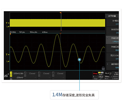存儲深度等于采樣率乘以采樣時間,512M大存儲深度,長時間捕獲波形,依然不會出現波形失真。