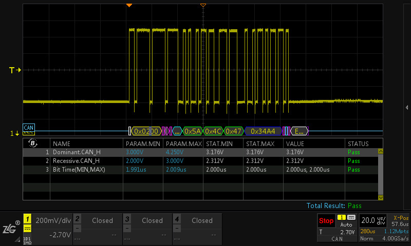 ZDS4000系列示波器免費標配時序分析功能,支持自定義參數配置對I2C、I2S、SPI、MIPI-RFFE、CAN、Reset、Switch進行分析處理。自動分析多個波形中差情況是否滿足標準,可直接篩選某個特定節點并直接生成附帶截圖的報告。