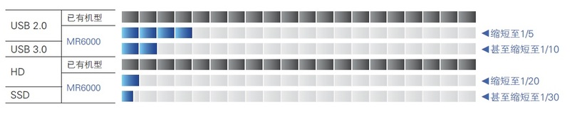 而且,MR6000安裝了新接口,數據傳輸速度是舊機型的32倍。