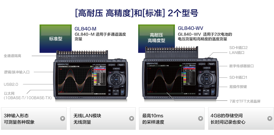 GL100的7種傳感器和轉接器都可以連接。更延伸了測量的范圍。