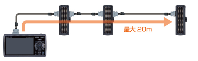 GL840用擴展端子臺連接線纜(50cm、2m 2種)可以把本體-端子臺、端子-端子間分開。